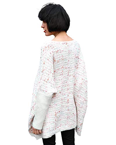 CY black blue pink white color tweed effect oversized long jumper top soft wool blend fabric – White