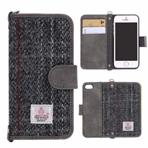 MONOJOY iPhone 7 Flip Case, iPhone 8 Cover Purse Card Cover Harris Tweed Wool Surface Fabric and Synthetic Suede Leather… – iPhone 7-8 ( 4.7″ ), Grey