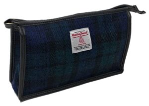 Harris Tweed Black Blue Green Tartan Cosmetic Toiletries Bag from Scott & Mackenzie