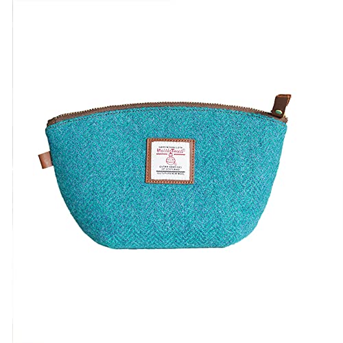 TAILORMAP Harris Tweed Wool Small Cosmetic Bag, Compact Scottish Tartan Small Makeup Bag, Handmade Stain-Resistant Travel Pouch for Women – Blue
