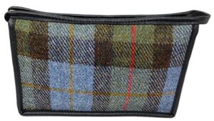 Harris Tweed Toiletries Wash Bag in MacLeod Tartan, Blue and Green