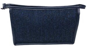 Scott MacKenzie Harris Tweed Blue and Black Herringbone Toiletries Wash Bag