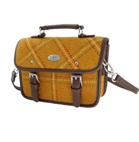 Glen Appin Harris Tweed Bervie Mini Satchel Bag With Adjustable & Removable Shoulder Strap – 130 Mustard Overcheck