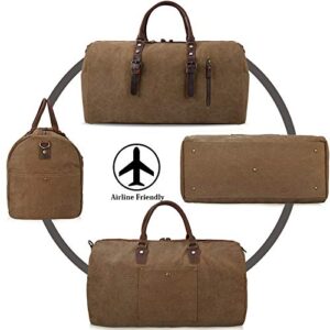 NUBILY Travel Bag for Men Genuine Leather Weekend Bag Duffel Bag Large Overnight Bag with Multi-Pockets Canvas Holdall Vintage Totes Women Brown