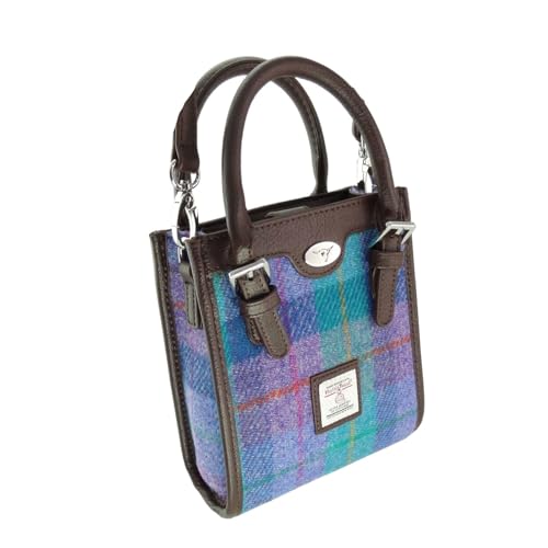 Glen Appin Harris Tweed ‘Keltie’ Tall Mini Tote Handbag With Removable Shoulder Strap – 79 Turquoise Check