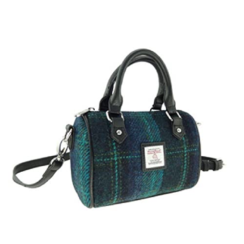Glen Appin Harris Tweed ‘Kilbride’ Mini Bowling Tote Bag – Colour 119 Blue-Turquoise Check