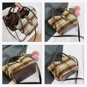 CORIOS Tweed Handbag for Women Tartan Shoulder Bag Vintage Crossbody Bag Medium Capacity Messenger Bag Elegant Tote Bag Top Handle Bag with Adjustable Strap Work Shopping Travel Satchel Bag