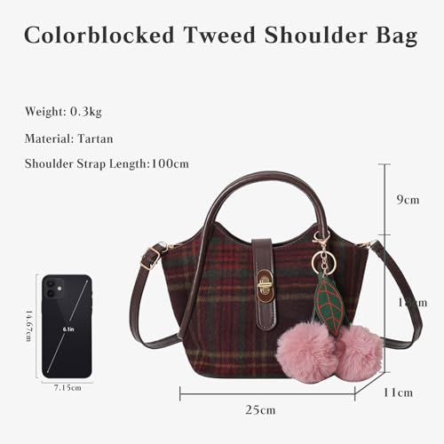 CORIOS Tweed Handbag for Women Tartan Shoulder Bag Vintage Crossbody Bag Medium Capacity Messenger Bag Elegant Tote Bag Top Handle Bag with Adjustable Strap Work Shopping Travel Satchel Bag – Red