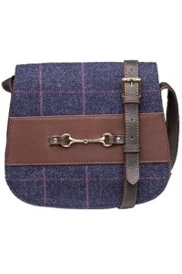 Ladies-Tweed-Saddle-Bag-Leather-Trim-Womens-Adjustable-Cross-Body-Handbag-Shoulder-Bags-Navy-0