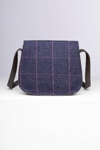 Ladies Tweed Saddle Bag Leather Trim Womens Adjustable Cross Body Handbag Shoulder Bags – Navy