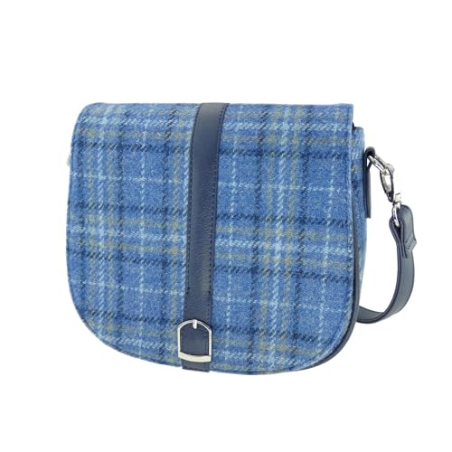 Harris Tweed Ladies Shoulder Bag in Different Tartans – Genuine Handwoven Scottish Wool – Adjustable Strap, Gift for her – Christmas and New Year Celebrations gift For Women – Light Blue Check