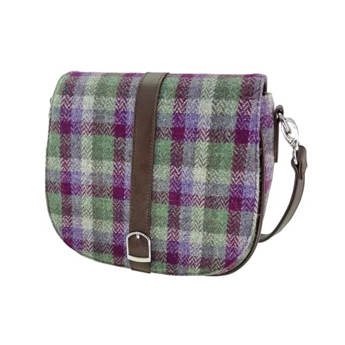 Harris Tweed Ladies Shoulder Bag in Different Tartans – Genuine Handwoven Scottish Wool – Adjustable Strap, Gift for her – Christmas and New Year Celebrations gift For Women – Green Small Check