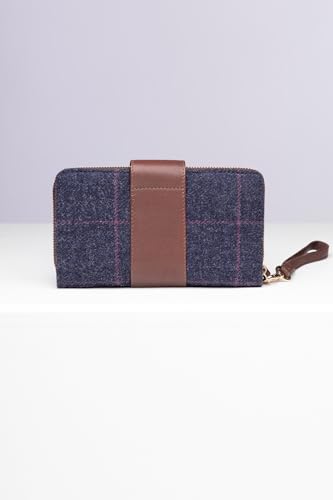 Rydale Ladies Tweed Clutch Purse Large Zip Around Purses Womens Long Wallet Wristlet Strap – Navy Tweed