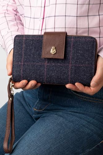 Rydale Ladies Tweed Clutch Purse Large Zip Around Purses Womens Long Wallet Wristlet Strap – Navy Tweed