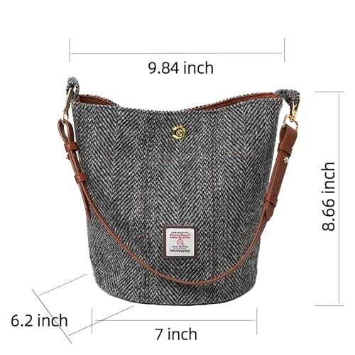 TAILORMAP Harris Tweed Women Bucket bag Shoulder bag Handbag with Leather Strap – No.291