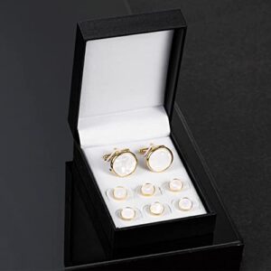 UJOY-Cufflinks-Studs-Set-1Pair-Cufflinks-3Pair-Tuxedo-Studs-Mens-Jewelry-Kit-with-G-ift-Box-White-Shell-Golden-Best-Man-G-ifts-for-Wedding-Box-for-Cufflinks-Valentine-G-ifts-for-Him-0-4