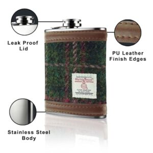 6oz Harris Tweed Hip Flask – Stainless Steel Tartan Liquor Hip flasks for Men – Leak Proof – Pocket Friendly – Gift Box, Keyring – Christmas – Liquor, Whisky, Rum