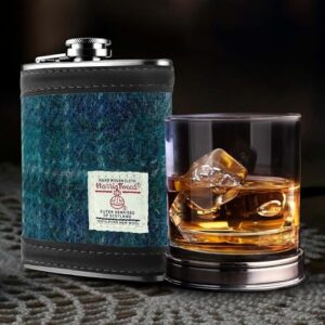 6oz Harris Tweed Hip Flask – Stainless Steel Tartan Liquor Hip flasks for Men – Leak Proof – Pocket Friendly – Gift Box, Keyring – Christmas – Liquor, Whisky, Rum