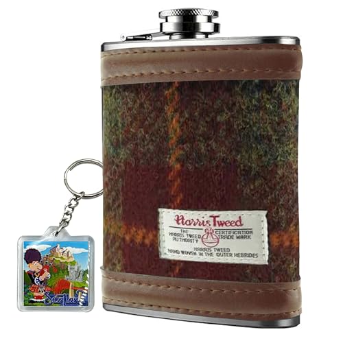 6oz Harris Tweed Hip Flask – Stainless Steel Tartan Liquor Hip flasks for Men – Leak Proof – Pocket Friendly – Gift Box, Keyring – Christmas – Liquor, Whisky, Rum – Rust Check
