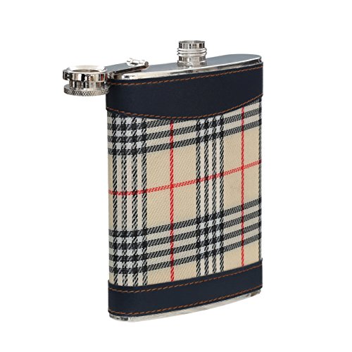 Premier-Housewares-508268-Hip-Flask-Hip-Flasks-For-Men-Pocket-Flask-Flask-Alcohol-8oz-Hip-Flask-Mini-Hip-Flask-Stitched-Leather-Trim-Cream-Tartan-Fabric-14hx10wx3d-H14-x-W10-x-D3cm-0-2