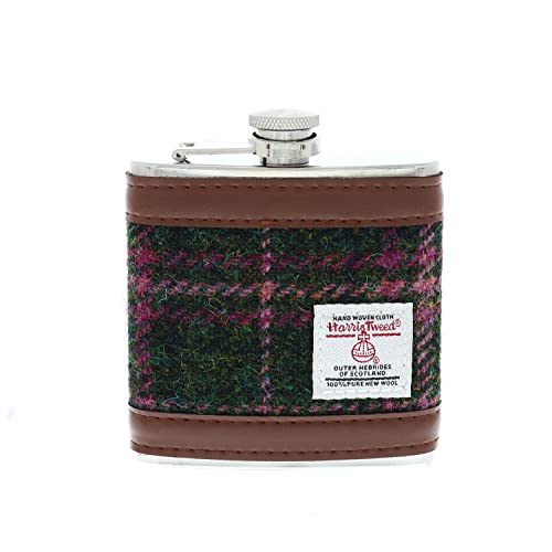 Glen-Appin-of-Scotland-Harris-Tweed-Hip-Flask-Gift-Boxed-Colour-107-GreenPink-0