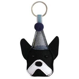 Earth-Squared-Tweed-Dog-Keyring-Boston-Terrier-with-Clown-Hat-0