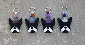 Earth Squared Tweed Dog Keyring – Boston Terrier with Clown Hat