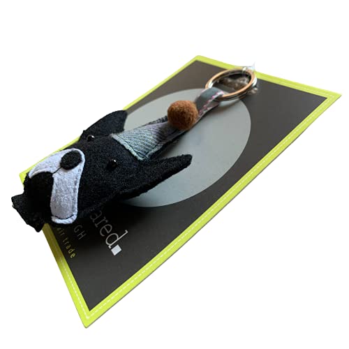 Earth Squared Tweed Dog Keyring – Boston Terrier with Clown Hat – Brown Bobble