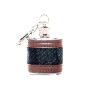 BRAW-CLANS-TARTANS-Harris-Tweed-1oz-Hip-Flask-Keyring-Set-of-12-Assorted-Tartan-Colours-Leather-Bound-Stainless-Steel-Gift-for-Men-Christmas-Birthday-0-0