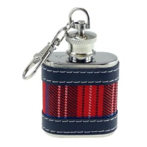 BRAW-CLANS-TARTANS-Harris-Tweed-1oz-Hip-Flask-Keyring-Set-of-12-Assorted-Tartan-Colours-Leather-Bound-Stainless-Steel-Gift-for-Men-Christmas-Birthday-0-1