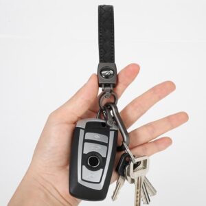 Mabor Keychain for Car, Universal Heavy Duty Woven Handmade Leather Key Chain Lanyard, Car Fob Key Keychains Accessories with Anti-Lost D-Ring for Men and Women, Black