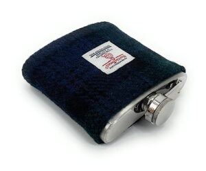 TARTAN-TWEEDS-Harris-Tweed-6oz8oz-Hip-Flask-Stainless-Steel-Boxed-0