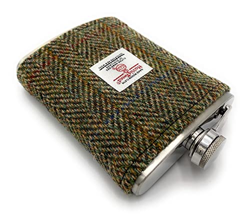 TARTAN-TWEEDS-Harris-Tweed-8oz-Hip-Flask-Stainless-Steel-Boxed-Green-Herringbone-0