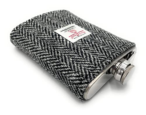 TARTAN-TWEEDS-Harris-Tweed-8oz-Hip-Flask-Stainless-Steel-Boxed-Grey-Herringbone-0