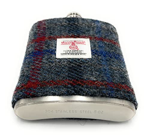 TARTAN TWEEDS Harris Tweed 6oz/8oz Hip Flask Stainless Steel Boxed