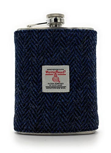 TARTAN TWEEDS Harris Tweed 6oz/8oz Hip Flask Stainless Steel Boxed
