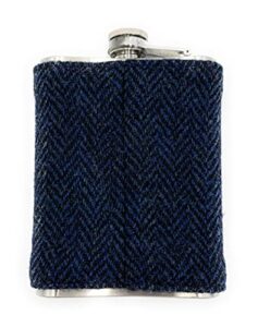 Harris-Tweed-8oz-Hip-Flask-Stainless-Steel-Boxed-Navy-Herringbone-0-3