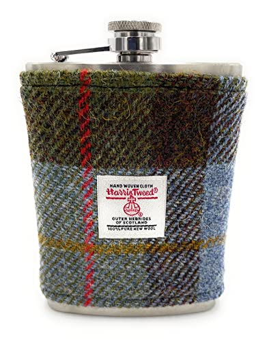 TARTAN TWEEDS Harris Tweed 6oz/8oz Hip Flask Stainless Steel Boxed