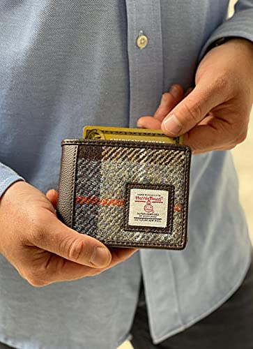 Harris Tweed Men’s Trifold Wallet with Coin Pocket – Blue-Brown Check
