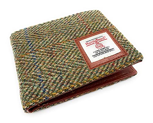 Mens-Harris-Tweed-Bifold-Wallet-Green-Herringbone-0