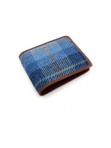 Mens Harris Tweed Trifold Wallet Purse – Blue Check