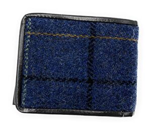 Mens Harris Tweed Trifold Wallet Purse – Blue Overcheck