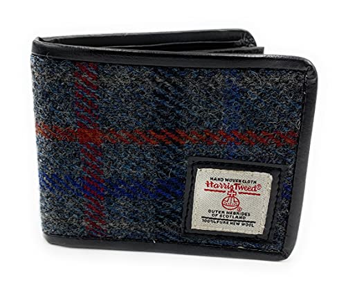 Mens Harris Tweed Trifold Wallet Purse – Slate Grey Check
