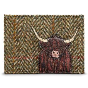 Yoshi Harris Tweed and Leather Highland Cow Card Holder, RFID Protection, Slim Wallet, Credit Card Holder, Brown Leather, Card Holder, Minimalist Design