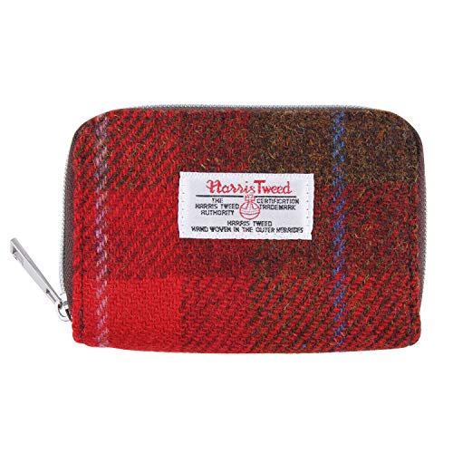 Harris Tweed Purse Tartan Zipped Plaid Wallets Small Coin Purses – Red Tartan