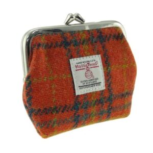 Authentic-Harris-Tweed-Small-Clasp-Purse-Handcrafted-in-Scotland-Ladies-Gift-Tartan-Style-Quality-Compact-Elegant-Deep-Orange-Check-0