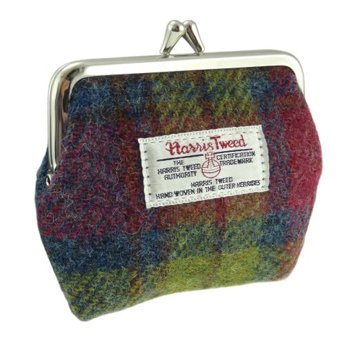 Authentic Harris Tweed Small Clasp Purse | Handcrafted in Scotland | Ladies Gift | Tartan Style & Quality | Compact & Elegant – Multi Colour Tartan