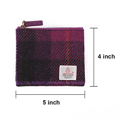 Harris Tweed Coin Purse Small Money Pouch with Zipper for Men Women – Magenta
