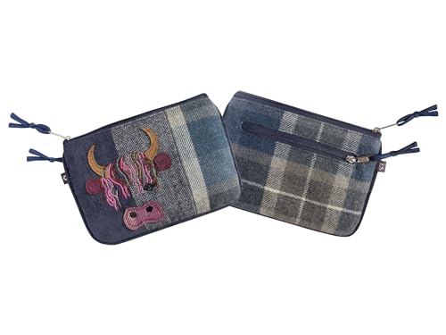 Earth Squared Fair Trade Tartan Tweed Highland Cow Dog Bird Juliet Coin Purse – Blue Highland Cow