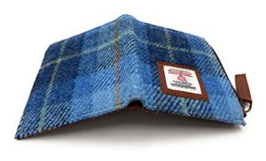 Women’s Harris Tweed Real Leather Small Bifold Wallet, Card Holder with Zipper Coin Purse Pocket